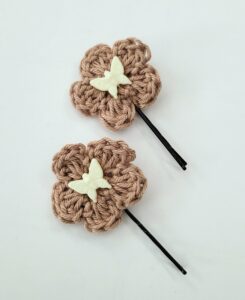 Hair Pin, Crochet Flower Hair Pin Set – Tan with Butterflies