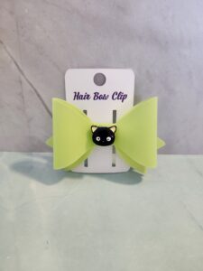 Neon Yellow Jelly Vinyl Faux Leather Cat Charm Hair Bow Clip
