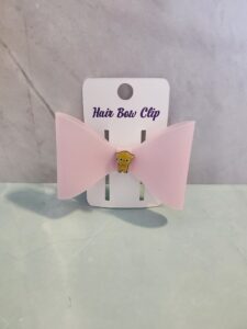 Pink Jelly Vinyl Faux Leather Yellow Bear Charm Hair Bow Clip