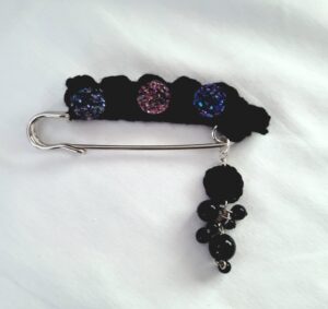 Crochet Brooch Pin – Black, Iridescent Beads with Pearls