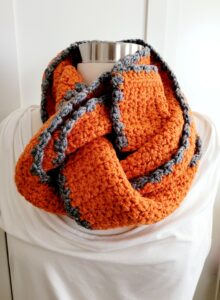 Scarf – Crochet Scarf – Orange/Grey