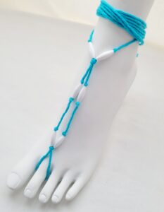 Barefoot Sandals, Decorative Foot Jewelry – Turquoise with White Beads
