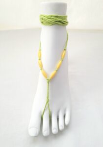 Barefoot Sandals, Decorative Foot Jewelry – Hot Green with Yellow Beads