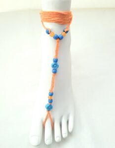 Barefoot Sandals, Decorative Foot Jewelry – Hot Orange with Blue Beads