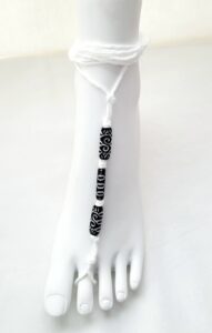 Barefoot Sandals, Decorative Foot Jewelry – White with Black/Silver Beads