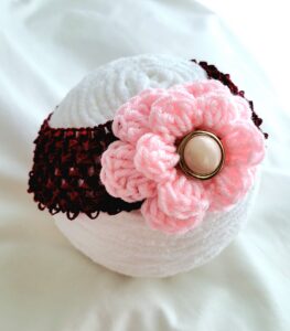 Headband, Crochet Headband – Pink Bubbles with Crochet Flower