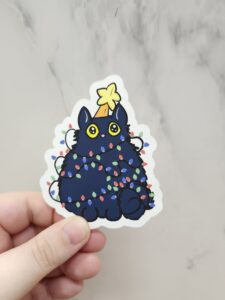 Black Cat Wrapped In Christmas Lights Vinyl Sticker 3″