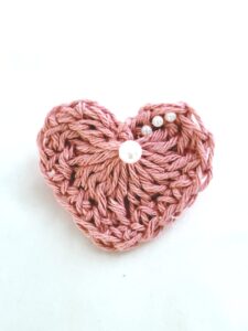 Crochet Brooch Pin – Heart, Rose with Beads