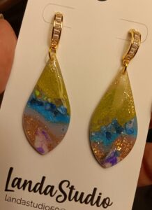 Beautiful Polymer Mixed Media Drops on on Huggie Posts with Rhinestones