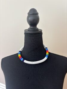 Silver And Smokey Grey Handmade Beaded Necklace With Shell Pendant