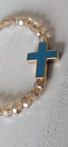 Handmade Beaded Bracelet with Aqua And Gold Cross