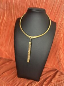 Hammered Gold Choker with Drop Pendant