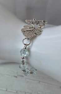 Handmade Crystal Bead Bracelet with Leaf Toggle Clasp
