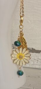 Handmade Daisey and Gold Leaf Charm Attachment on Gold Plated Chain