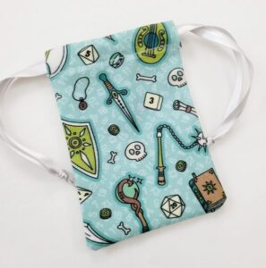 Drawstring Bag – Reusable Gift & Storage Pouch – Quest in Green with Blue Ribbon