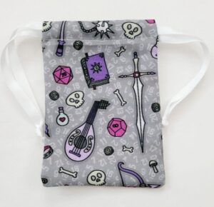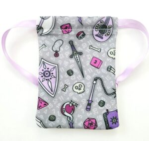 Drawstring Bag – Reusable Gift & Storage Pouch – Quest in Silver and Purple with White Ribbon
