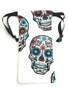 Drawstring Bag – Reusable Gift & Storage Pouch – White, Sugar Skulls