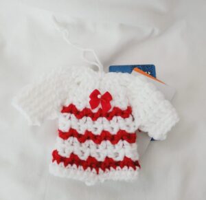 Gift Card Holder & Ornament – Holiday White/Red Candy Cane Mini Sweater