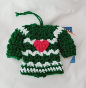 Gift Card Holder & Ornament – Green/Yellow Mini Sweater Dress
