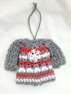 Gift Card Holder & Ornament – Grey White with Red Mini Sweater