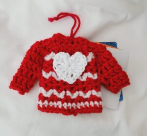 Gift Card Holder & Ornament – Taupe Brown Mini Sweater with Lavender Heart