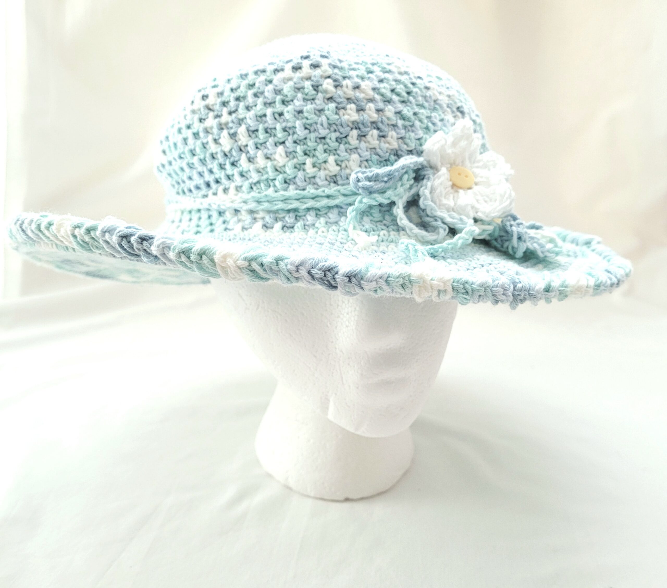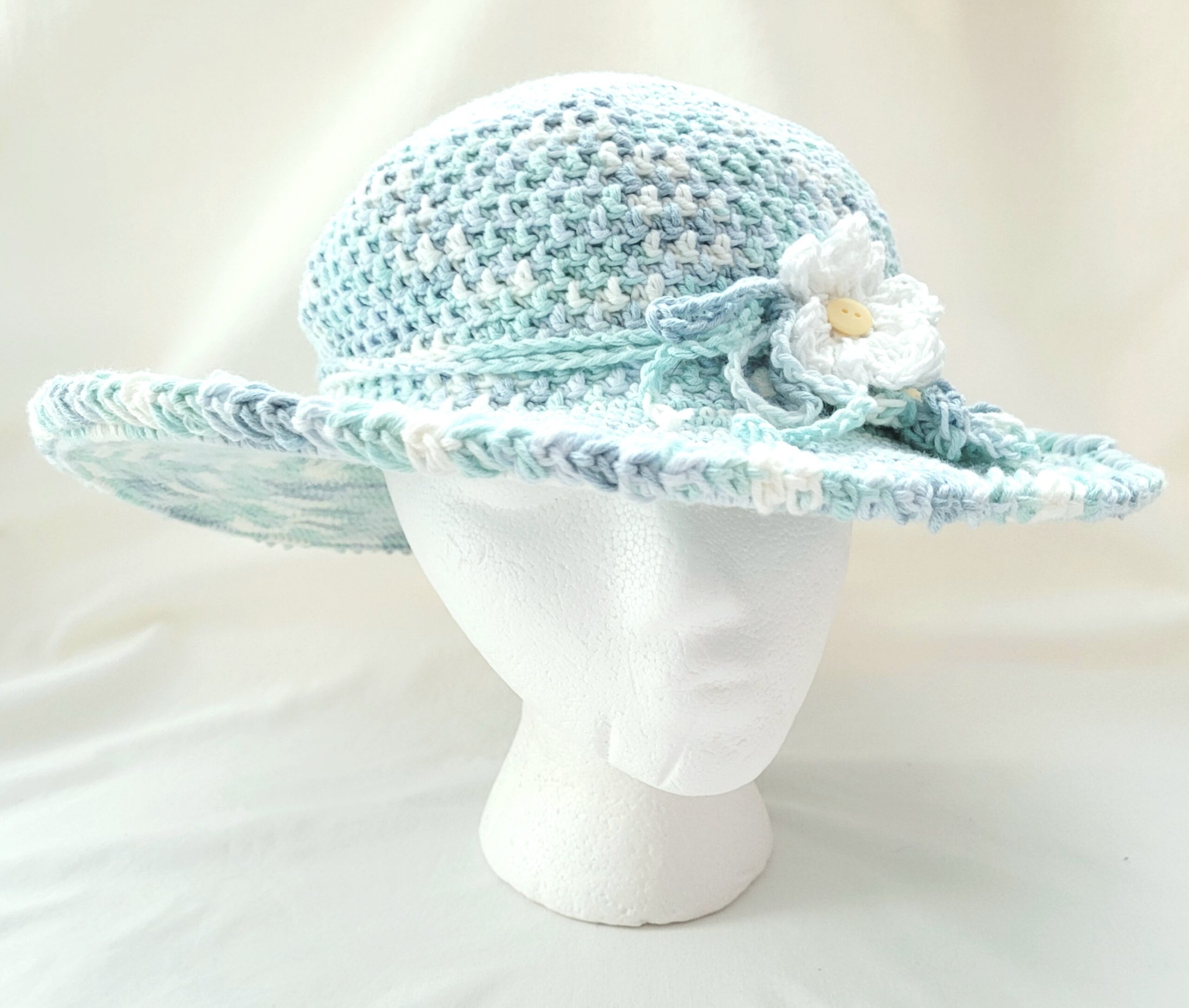 Hat – Crochet Unisex Brim Hat – Blue/White Refresh