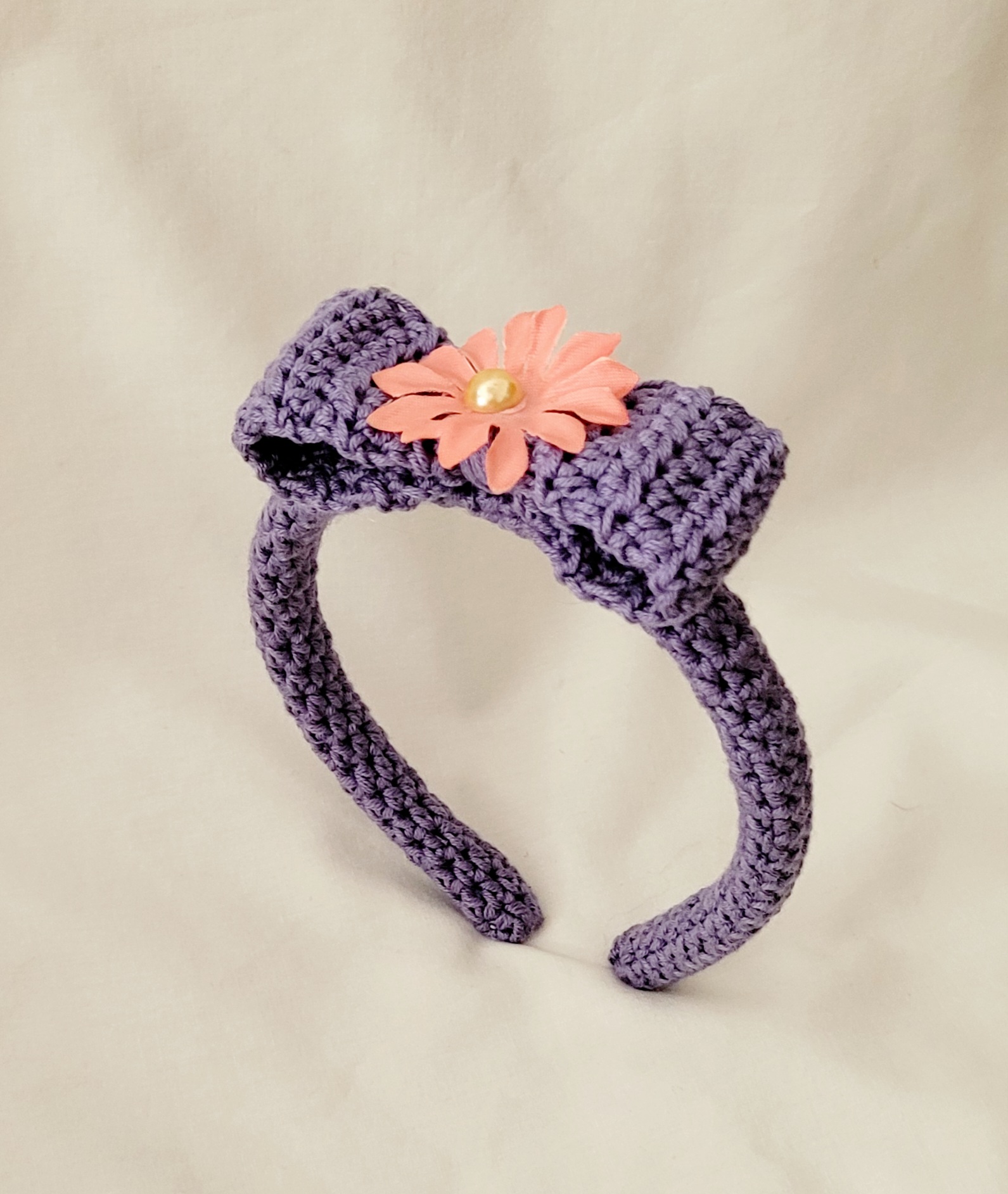 Headband, Crochet Headband – Lavendar with Crochet Bow