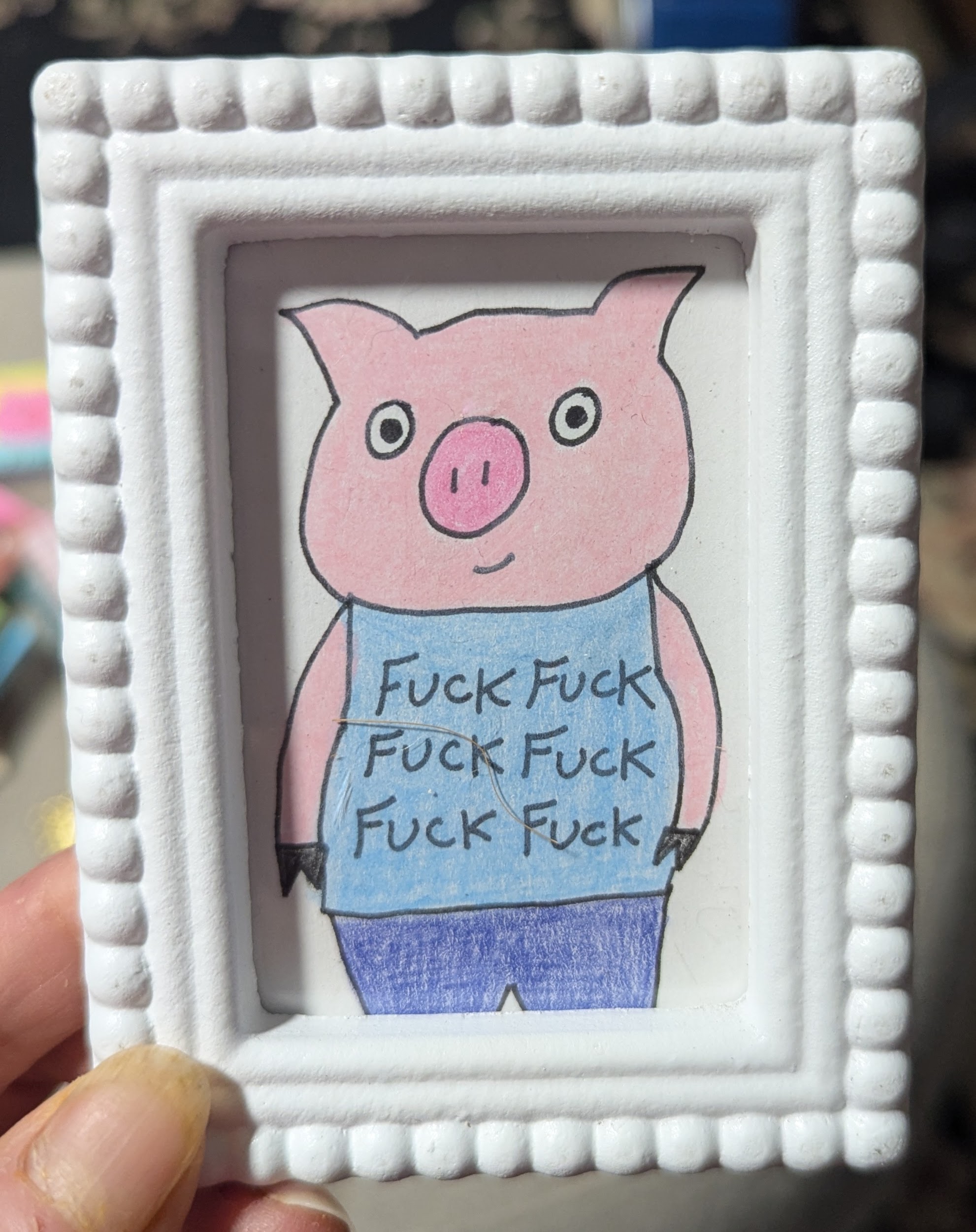 Fuck fuck fuck fuck fuck fuck pig in a frame that is magnetic so you can put it on your fucking fridge.