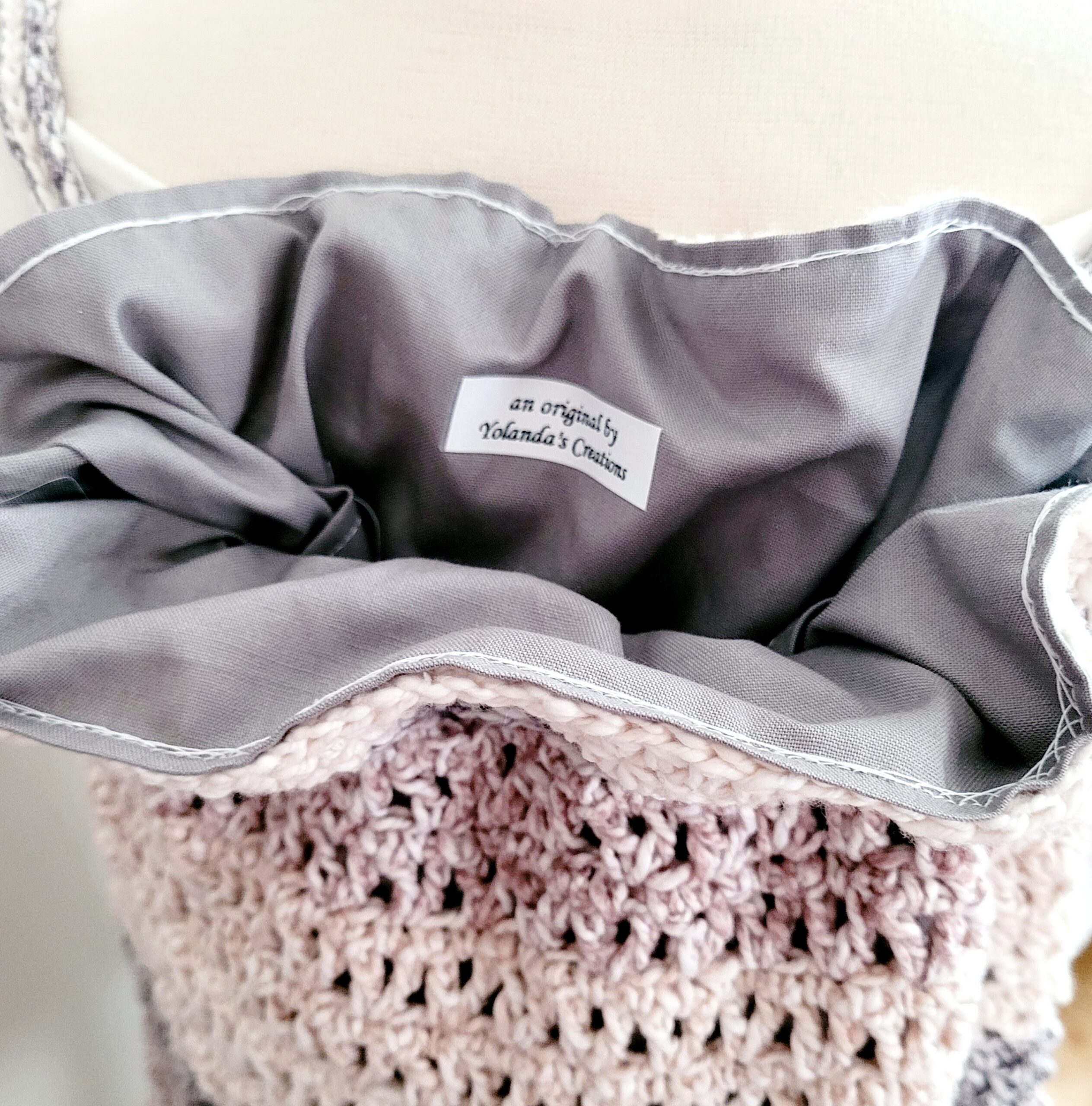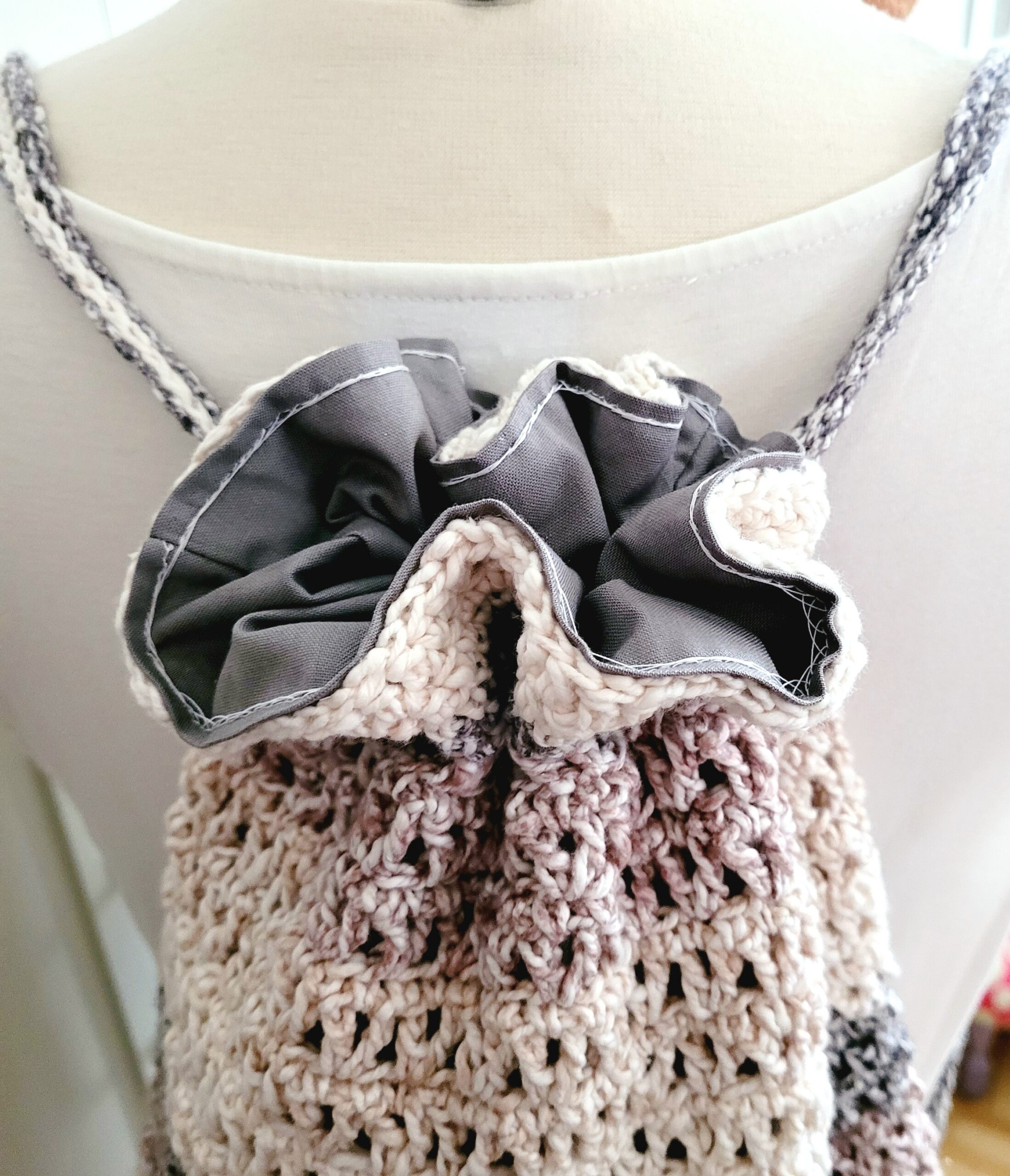 Backpack, Crochet Backpack/Cinch Boho Purse – Granite