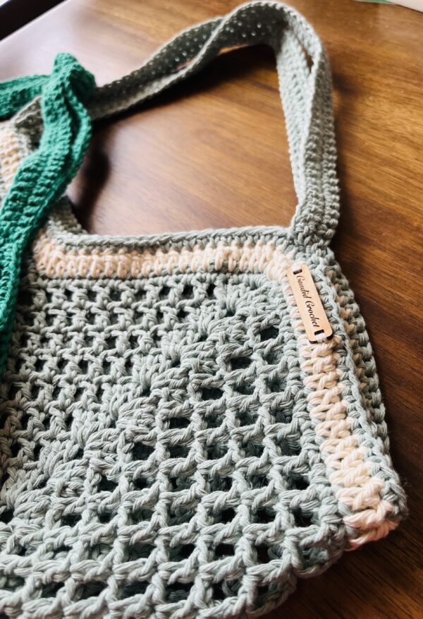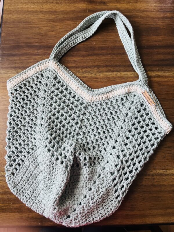 Crochet Eco-friendly Tote Bag – Recycled Cotton Market Bag – “Make a Difference” Market Bag