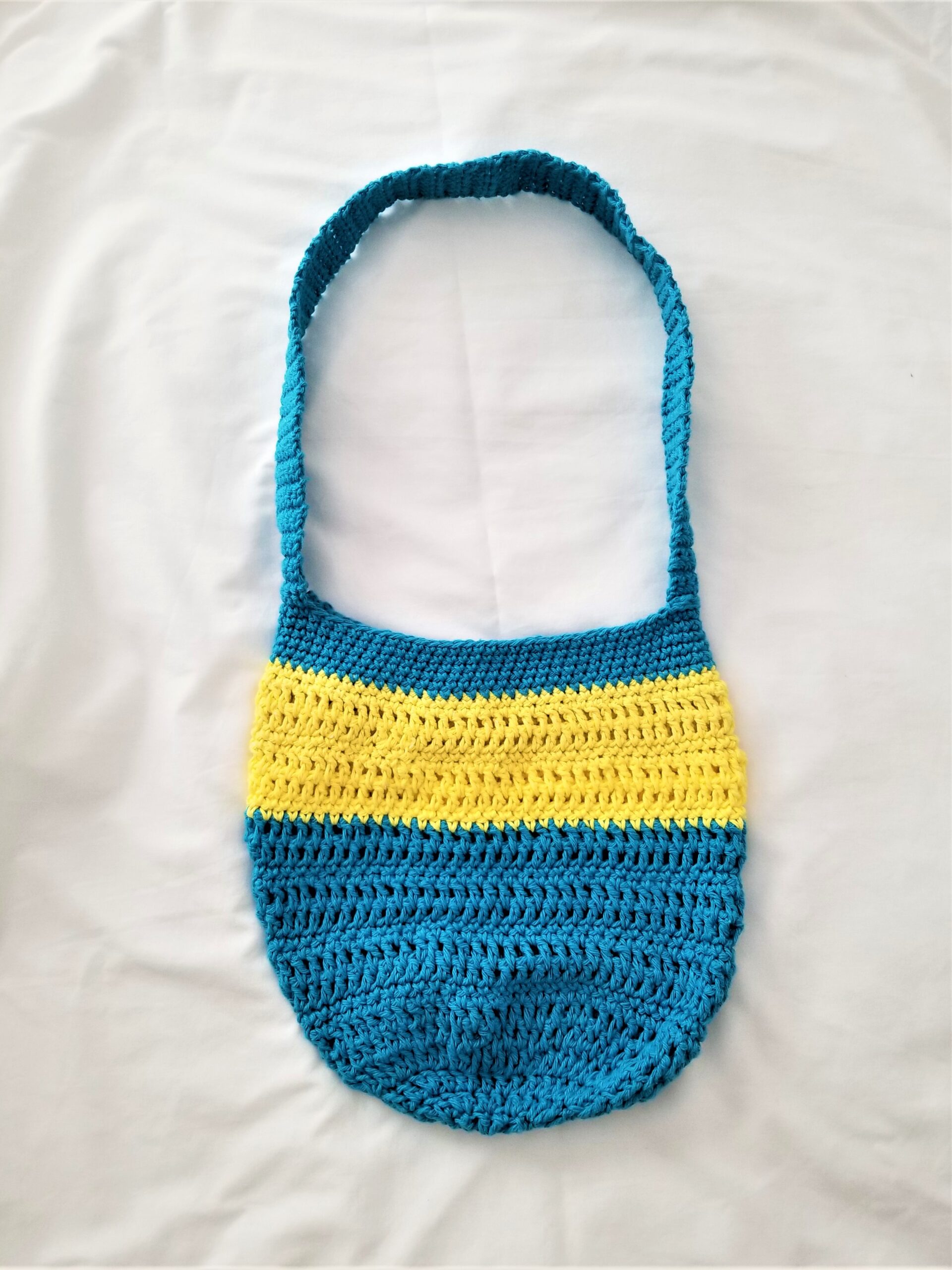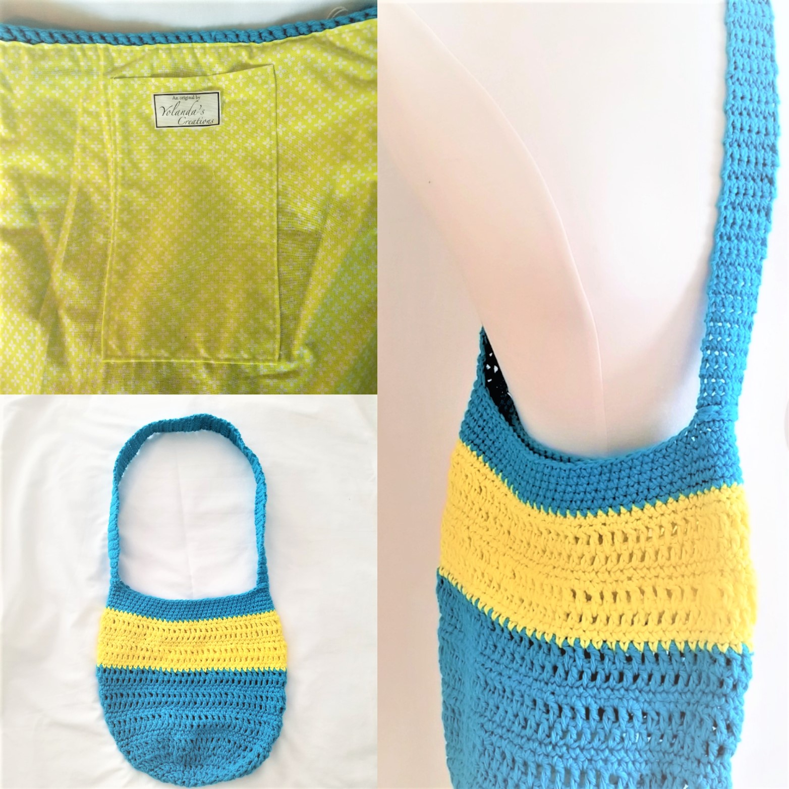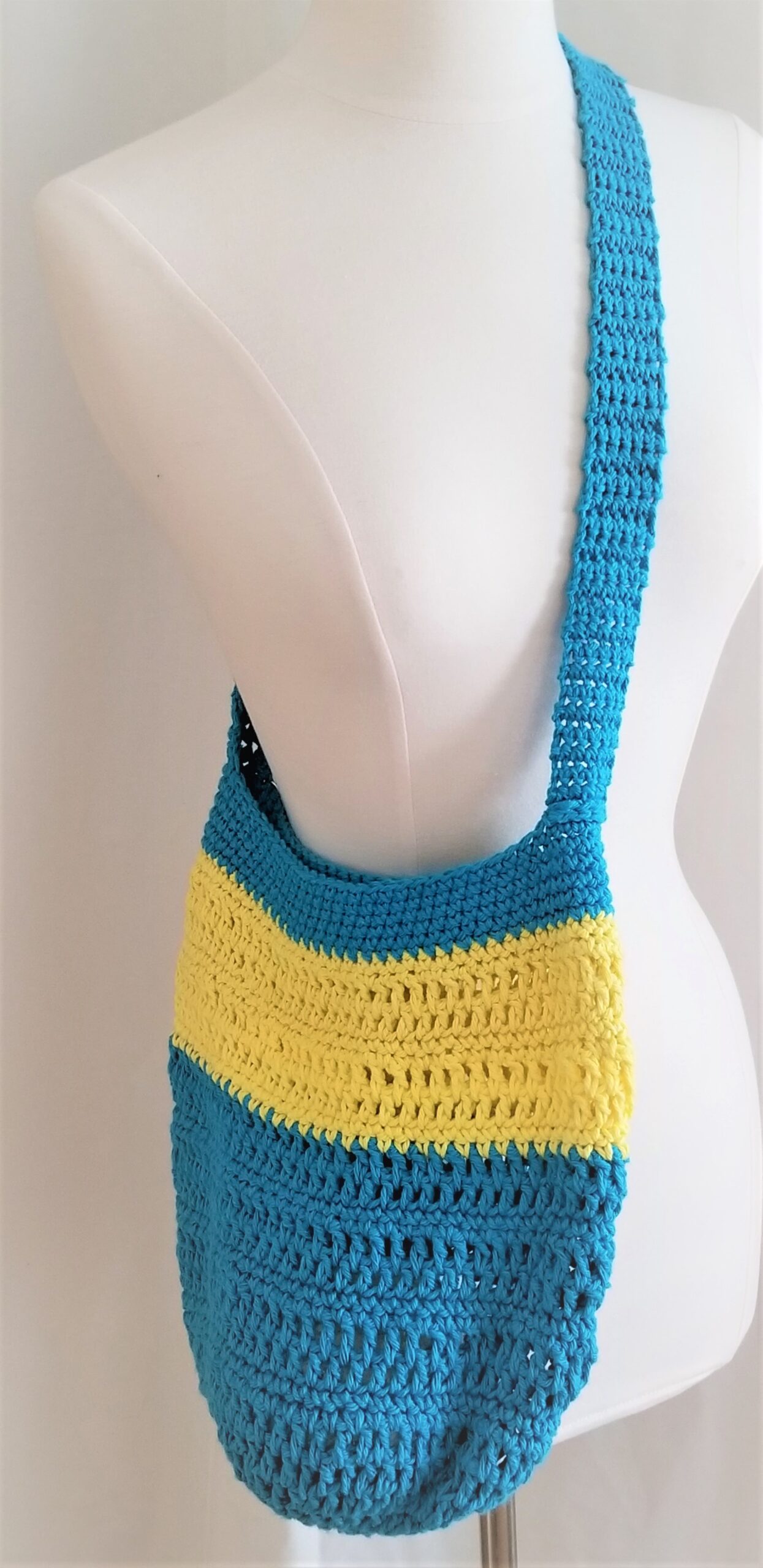 Market Crochet Tote Bag – Blue/Bright Yellow