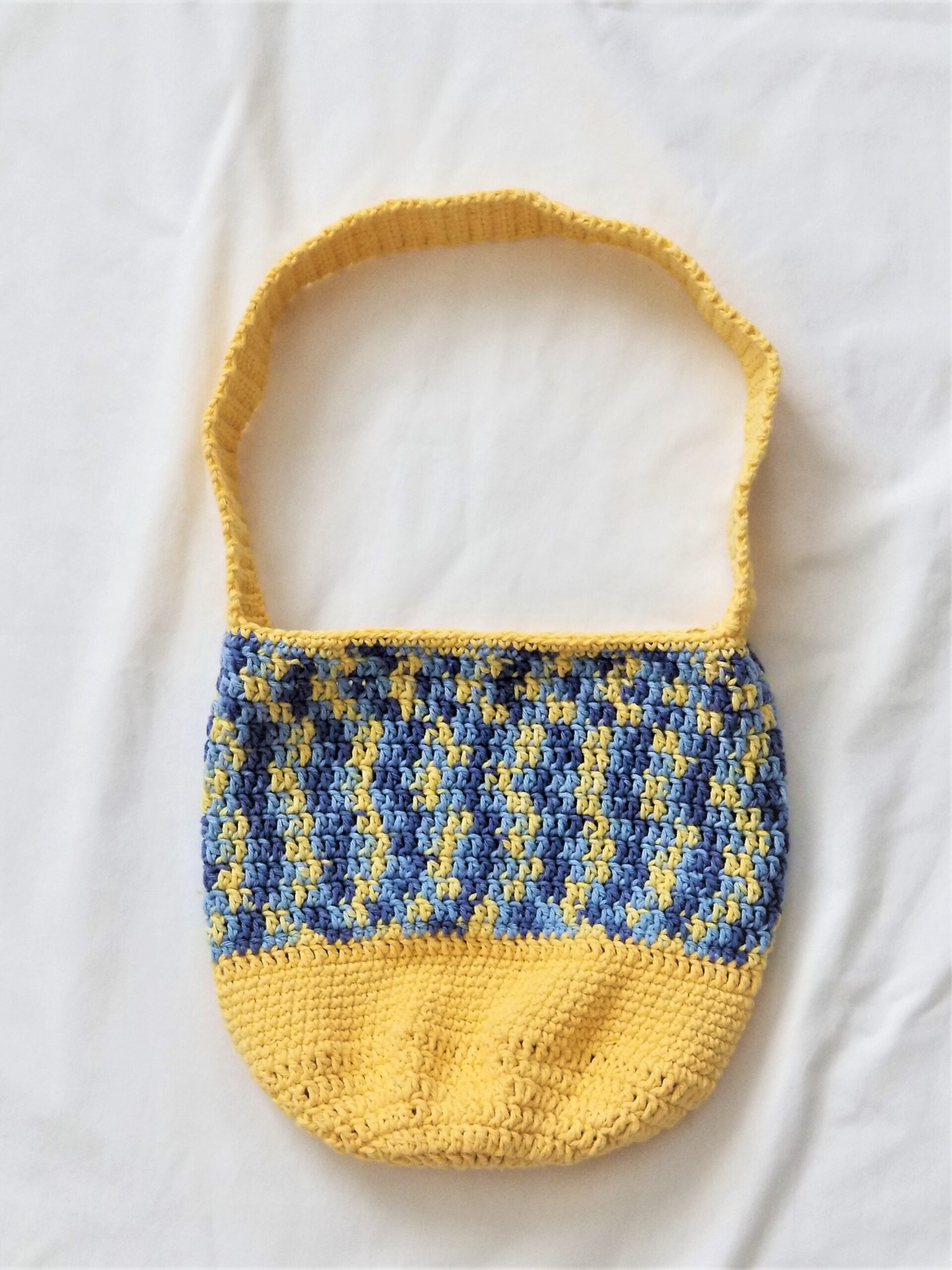 Market Crochet Tote Bag – Yellow with Blue, Sunny Skies
