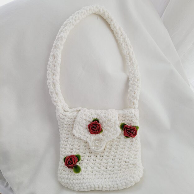 Purse, Crochet Children Purse – White with Small Roses