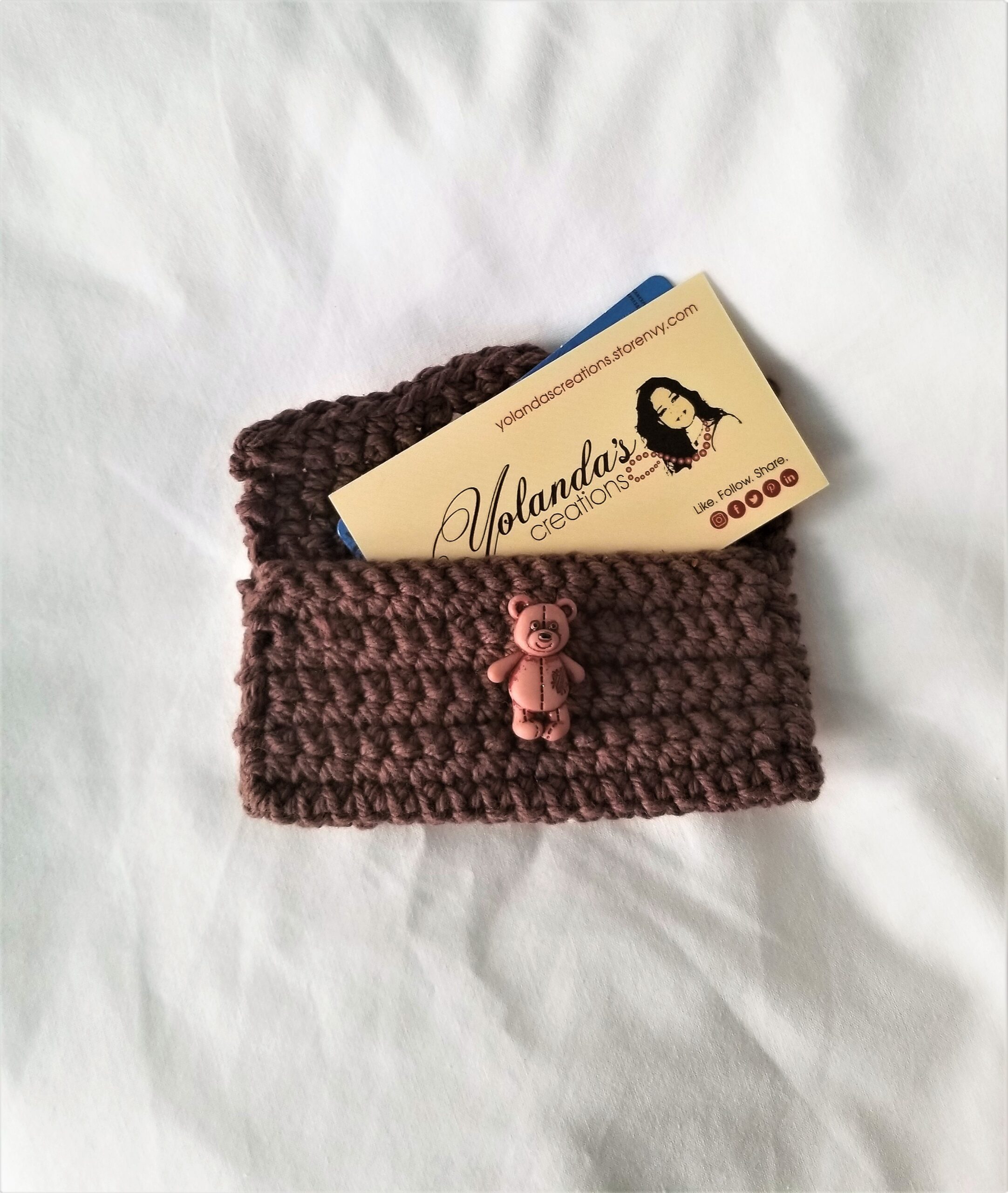 Gift Card Multi-Purpose Holder – Brown with Tan Teddy Bear Button