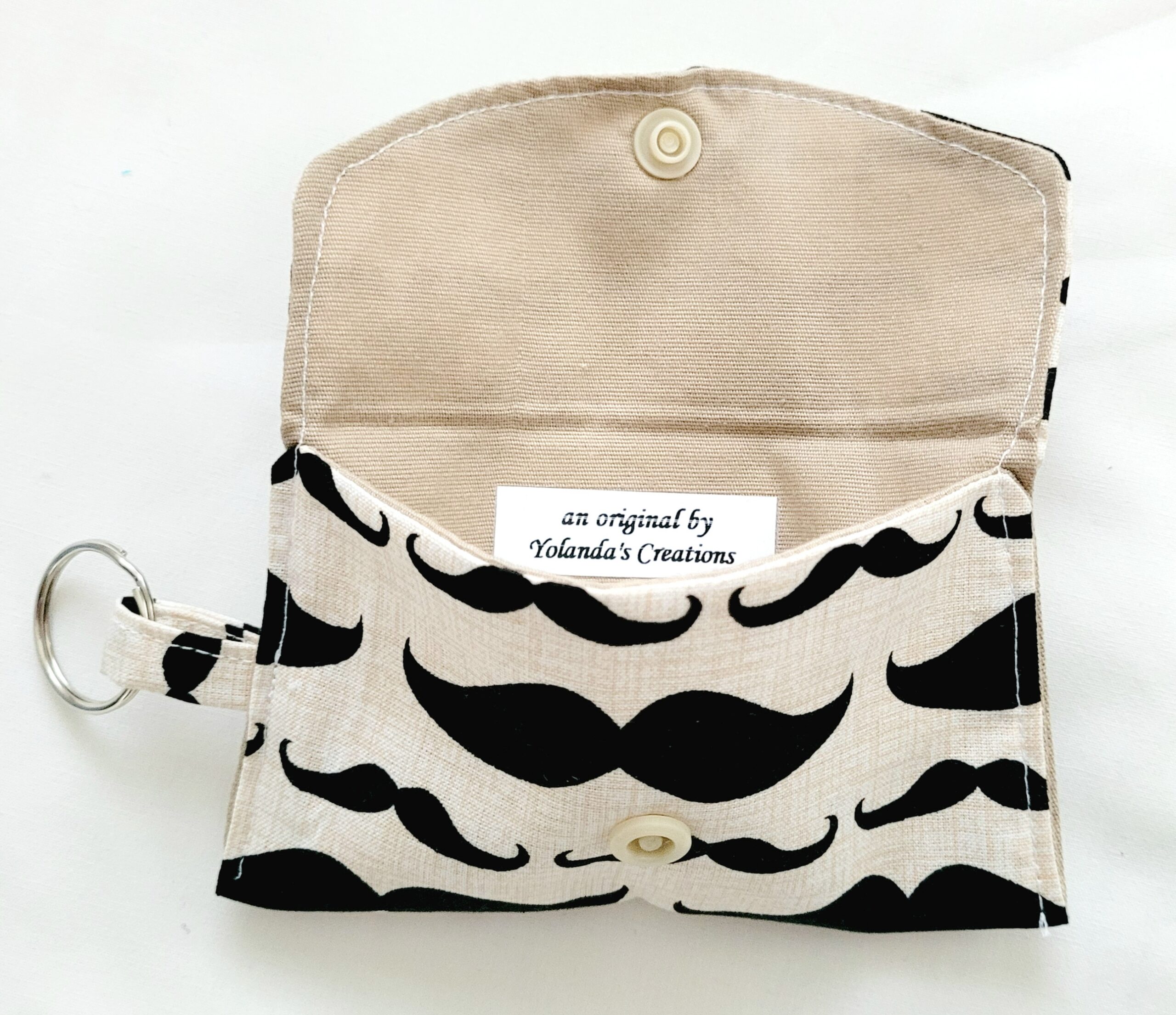 Gift Card Multi-Purpose Holder, Fabric – Tan/Black Mustache