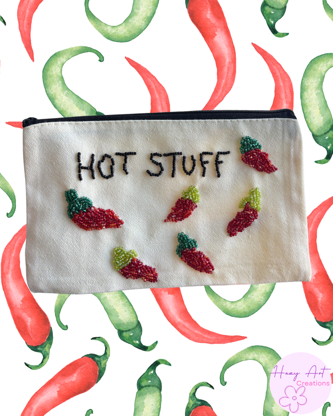 Cute canvas bag that fits phone, wallet makeup and anything else you need in your bag. Hand beaded!