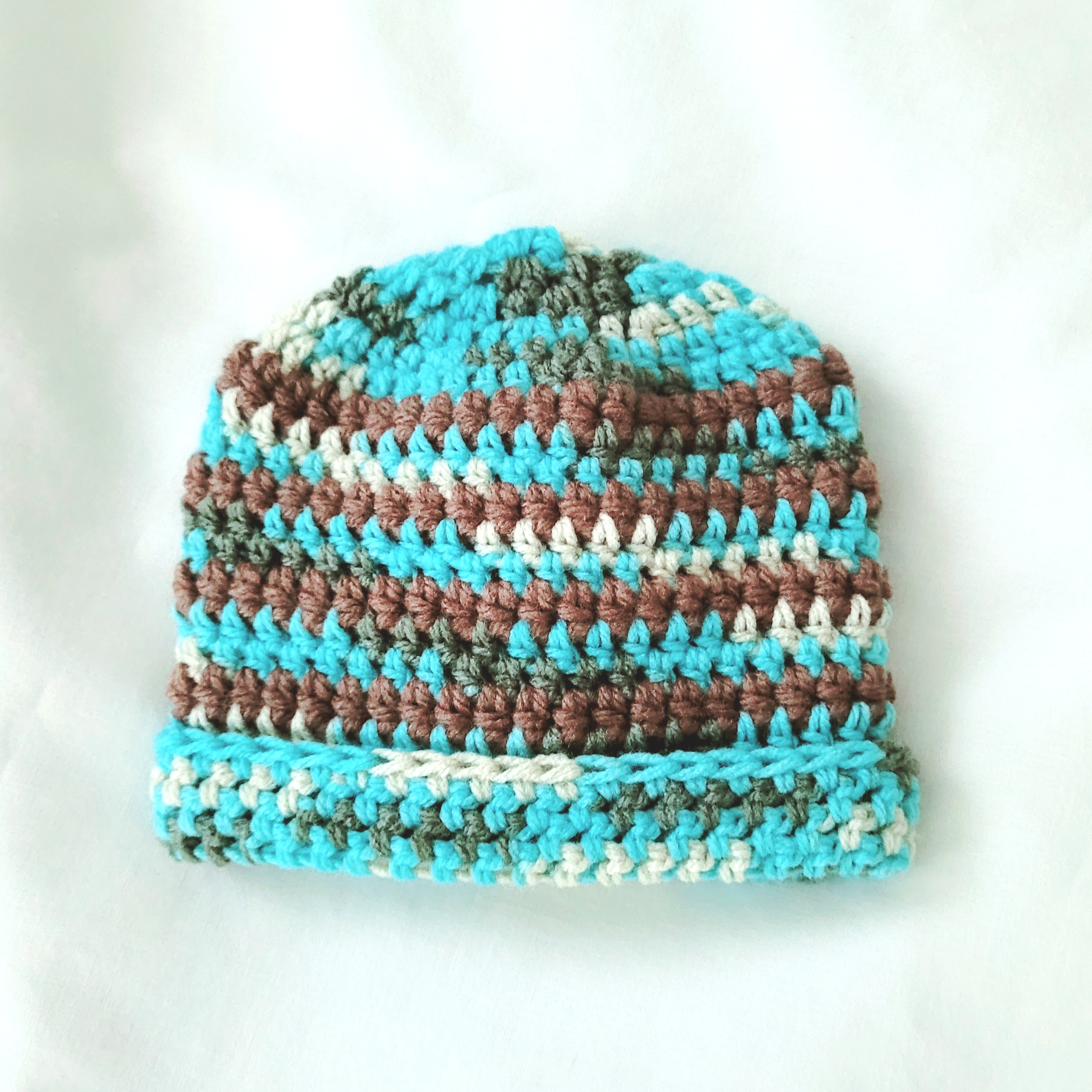 Baby Crochet Hat – Brown/Turquoise – Newborn