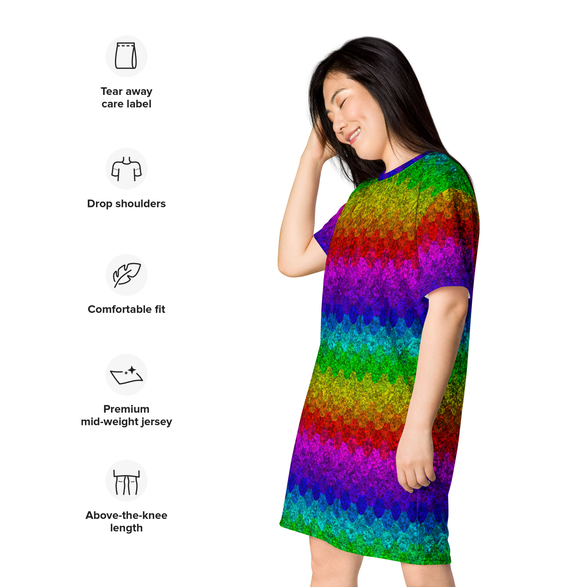 Lace up your sneakers or throw on some heels–this dress is all about versatility. Put your twist on the oversized t-shirt dress look and assemble an outfit that stands out.