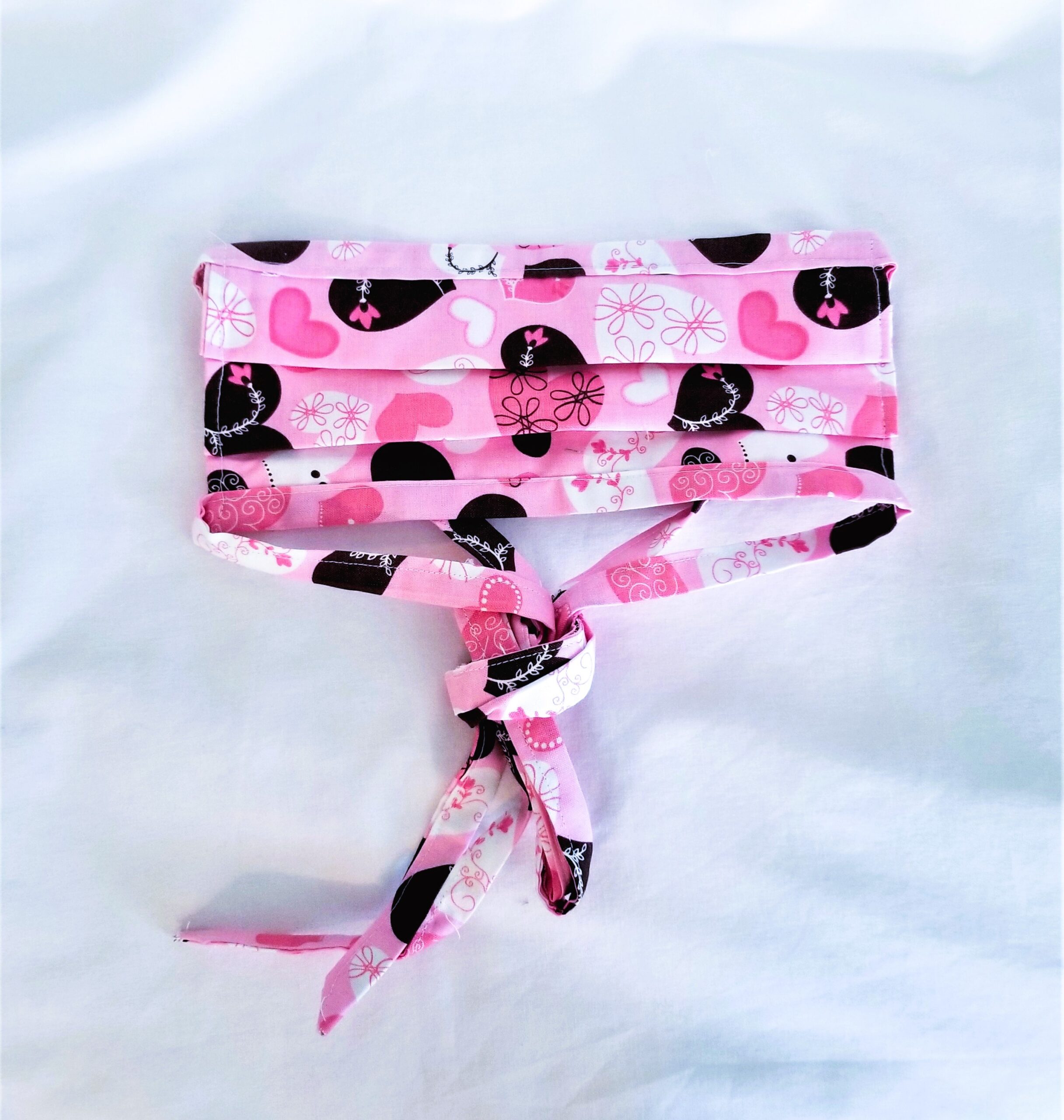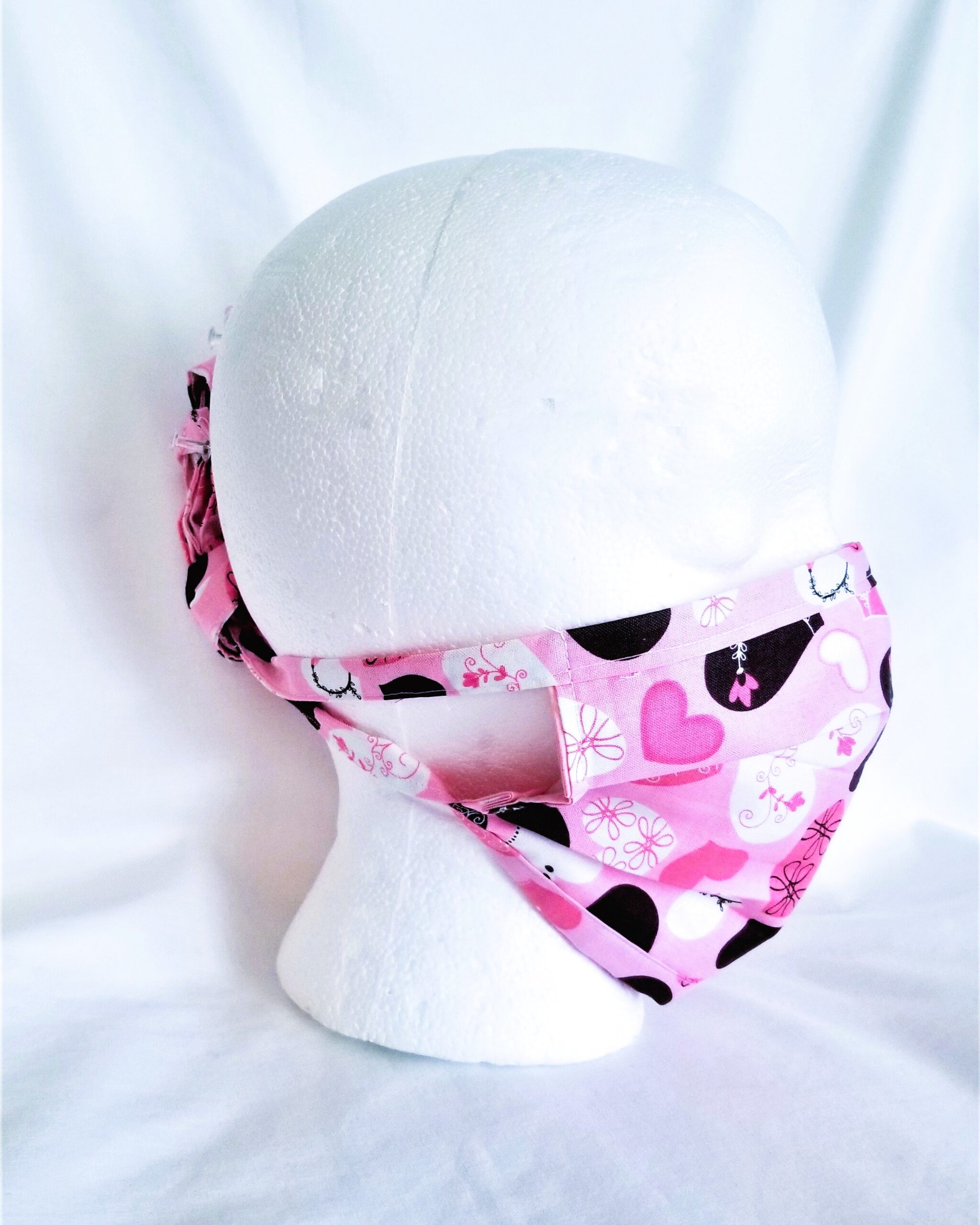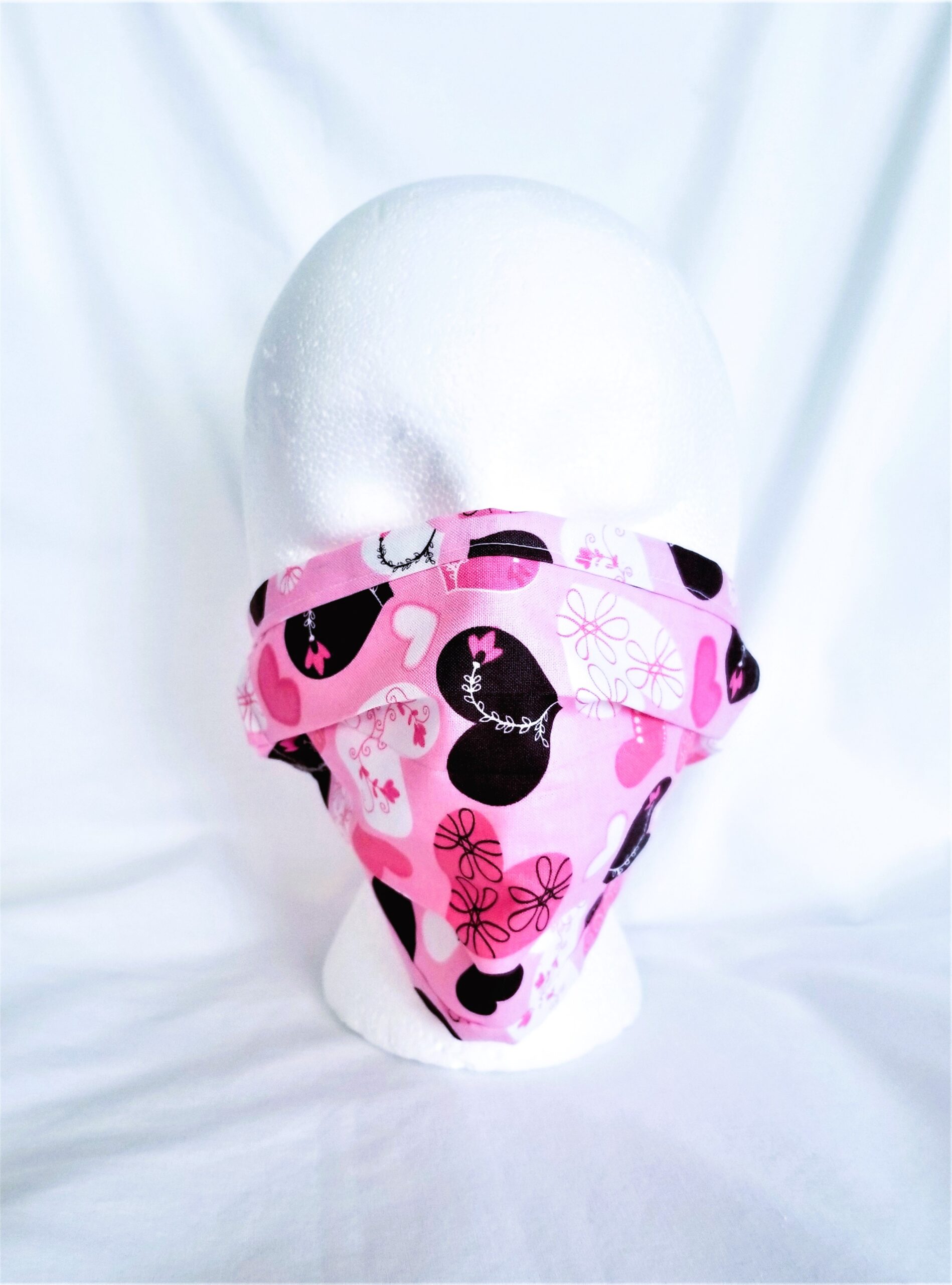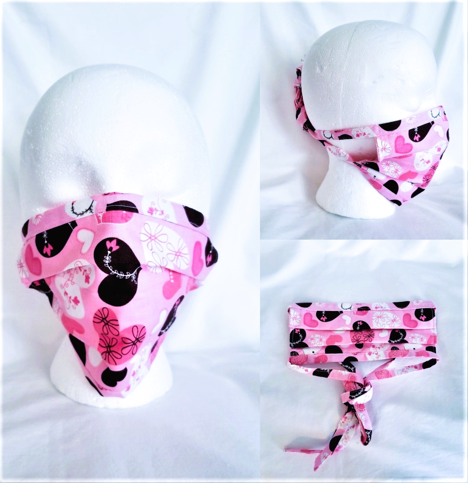 Mask, Reusable Face Mask with Ties – Pink/Brown Hearts