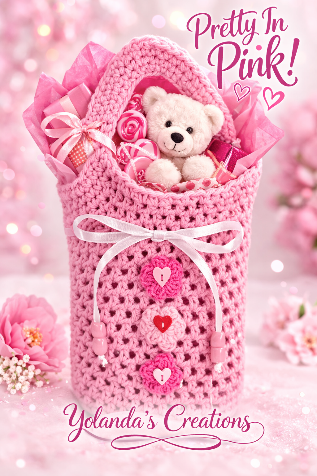 Gift Bag, Crochet Gift Bag – Pink