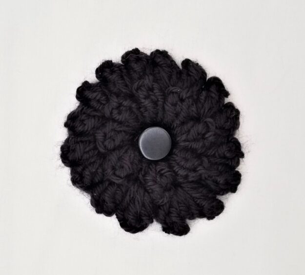 Crochet Brooch Pin – Black Multi Petal with Black Button