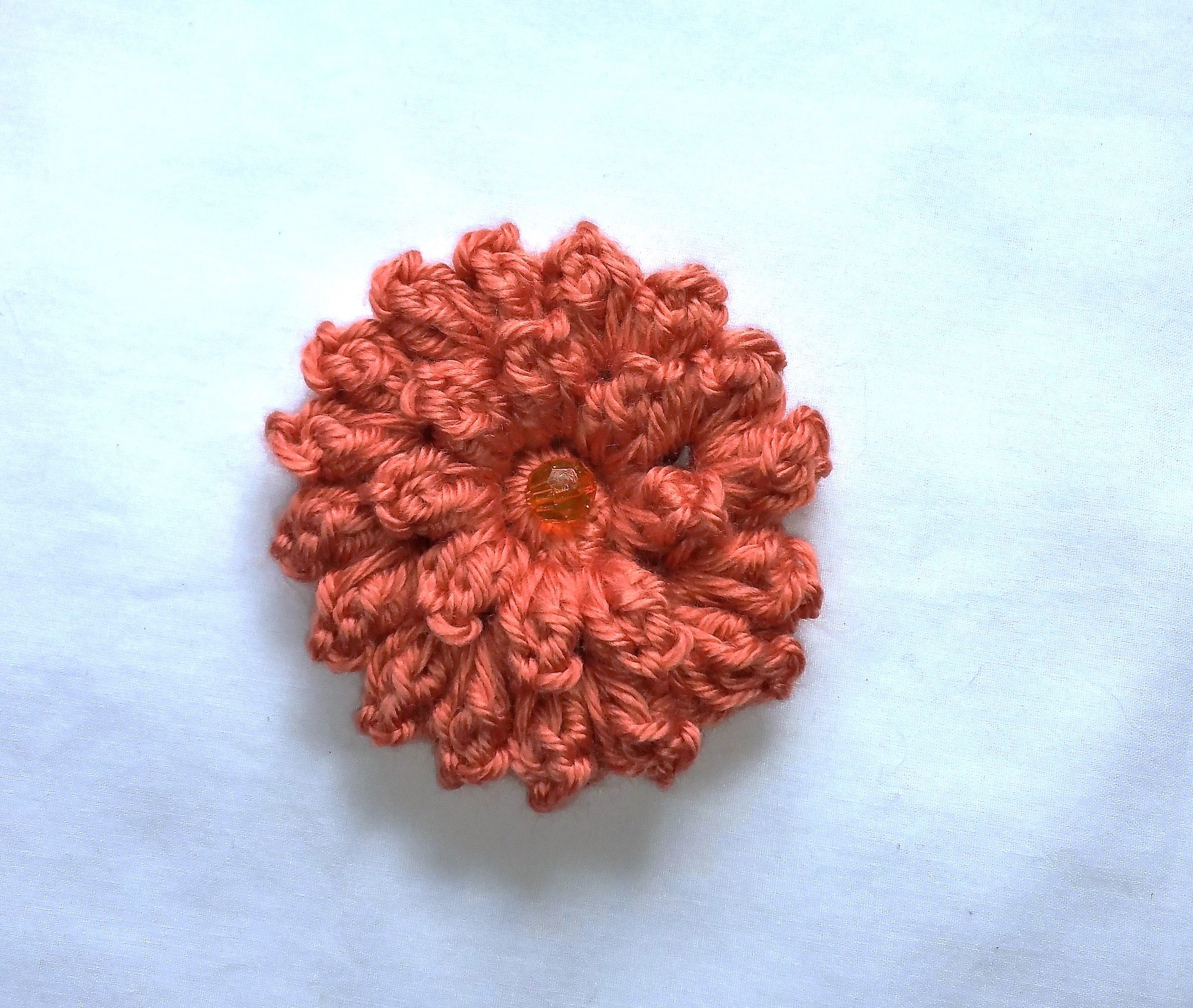 Crochet Brooch Pin – Orange Mist Multi Petal Flower with Bead