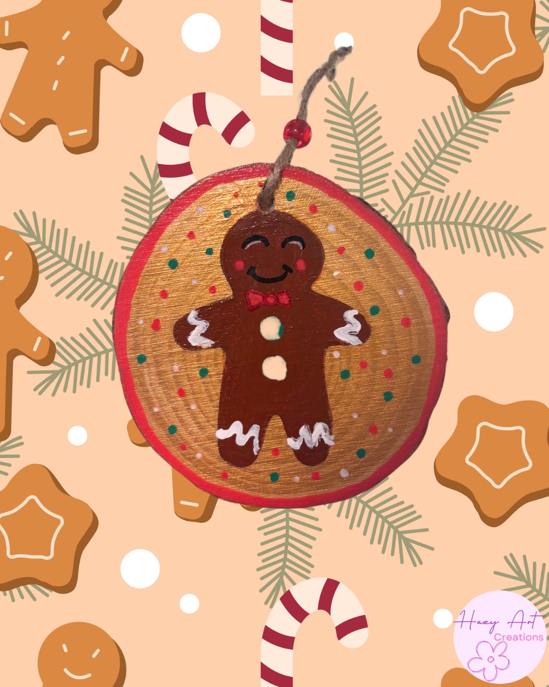 Gingerbread man painted on wooden ornament. Perfect for your tree