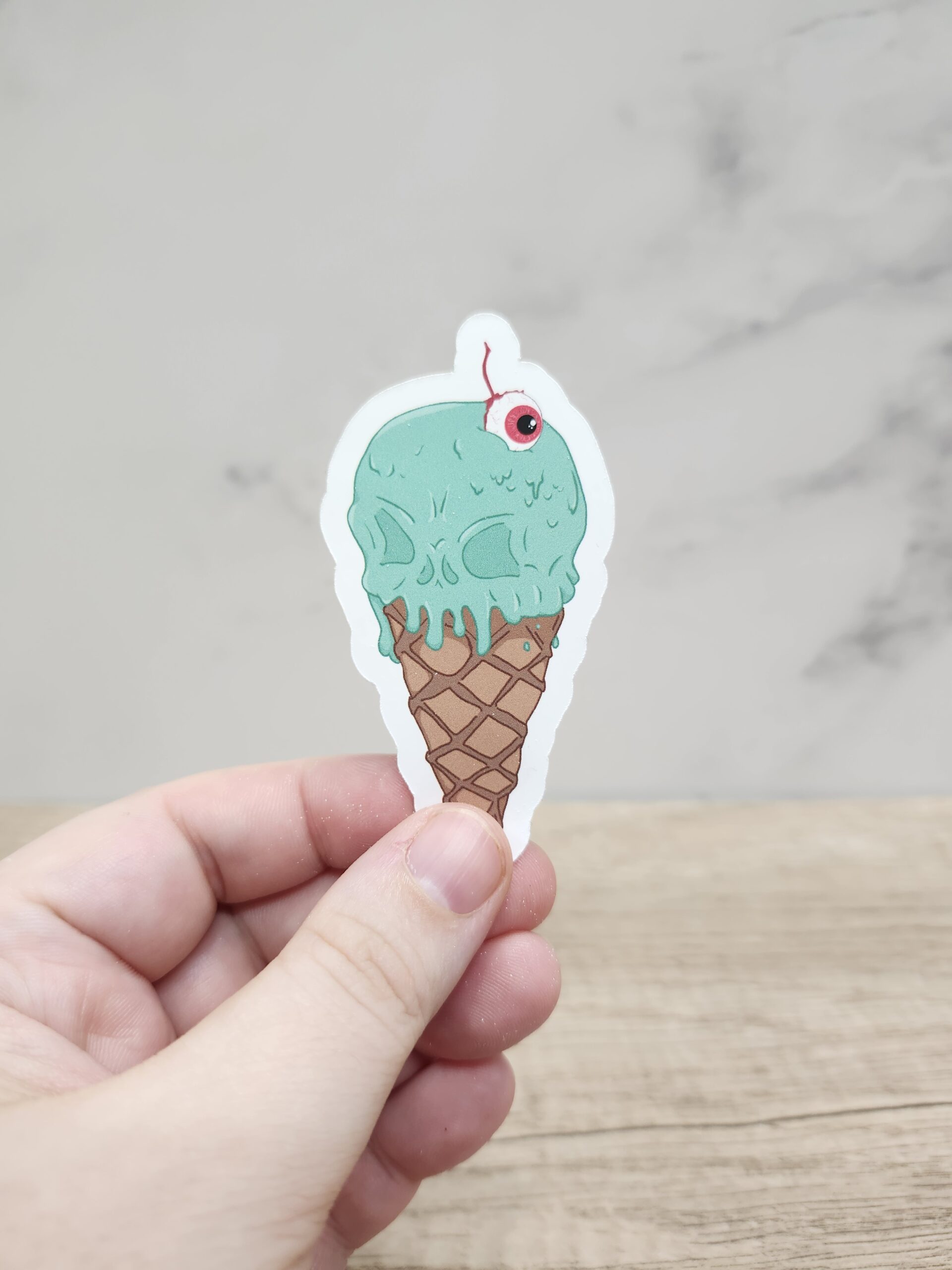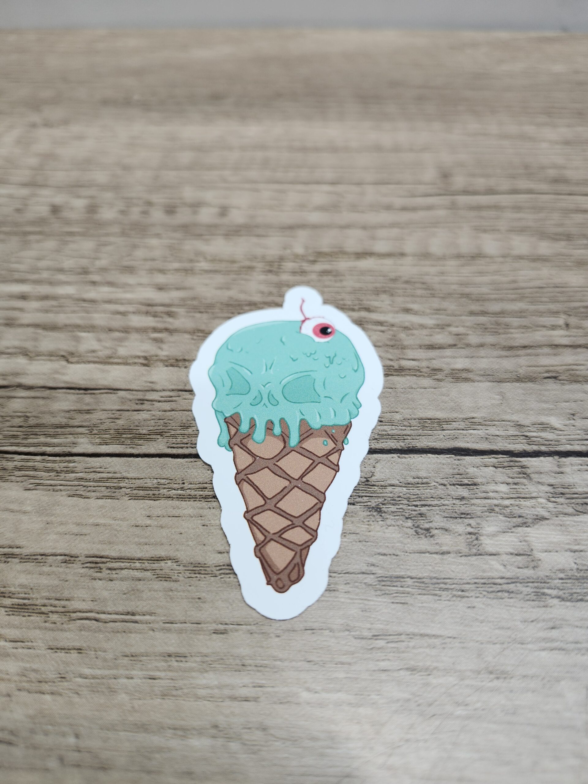 Zombie Skull Ice Cream Cone with Eyeball Vinyl Sticker 3″