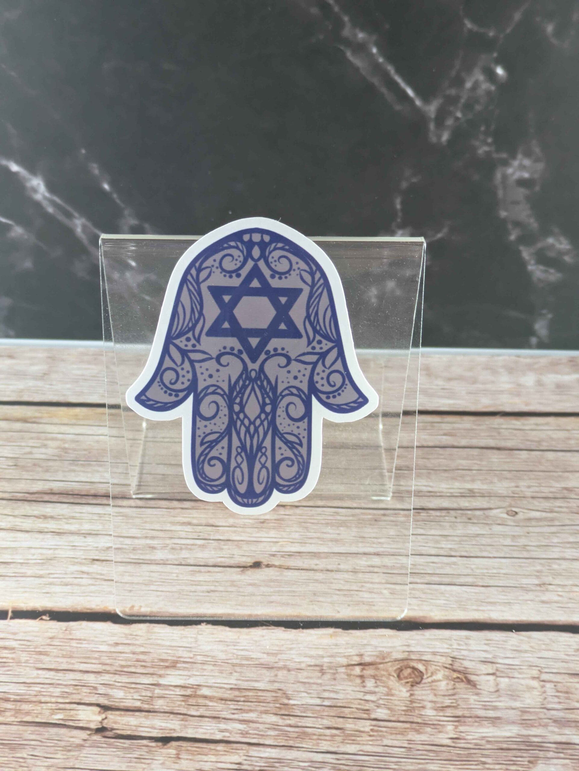 This striking 3-inch vinyl sticker features the Hamsa—also known as the Hand of Miriam—adorned with a prominent Star of David at its center. The intricate pattern makes this a beautiful symbol of protection and blessings.