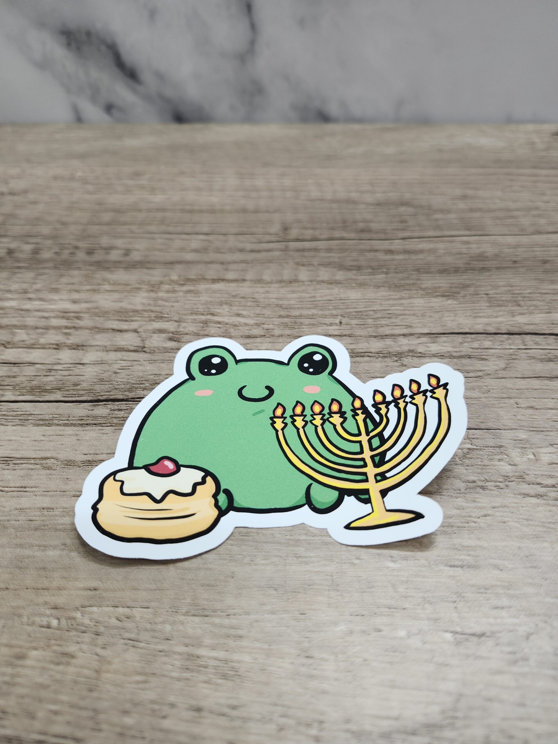 Round Blob Frog Hanukkah Donut Menorah Vinyl Sticker 3″