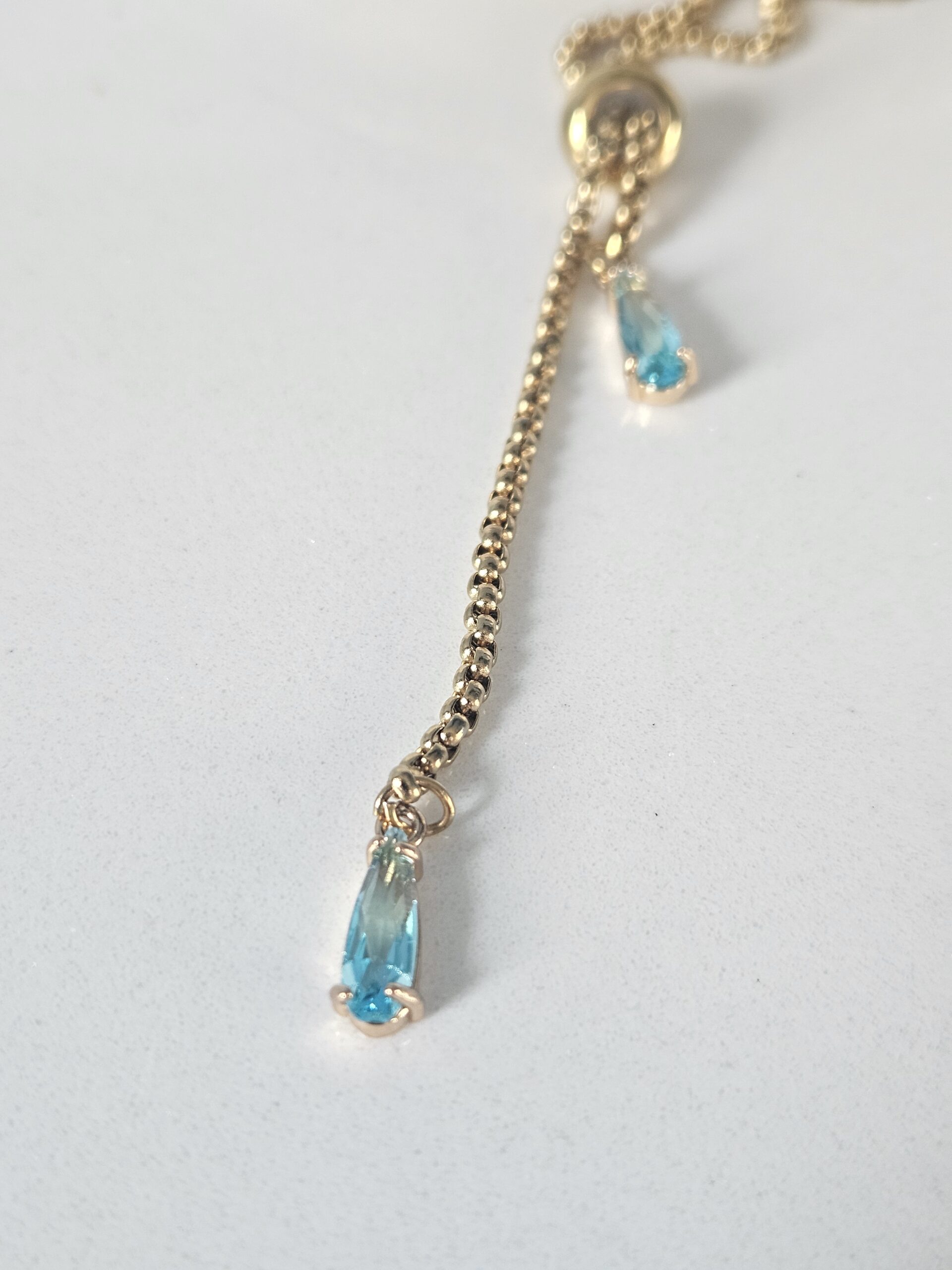 Be the first to review “18k Plated Adjustable Necklace with Blue Glass Charms” Cancel reply