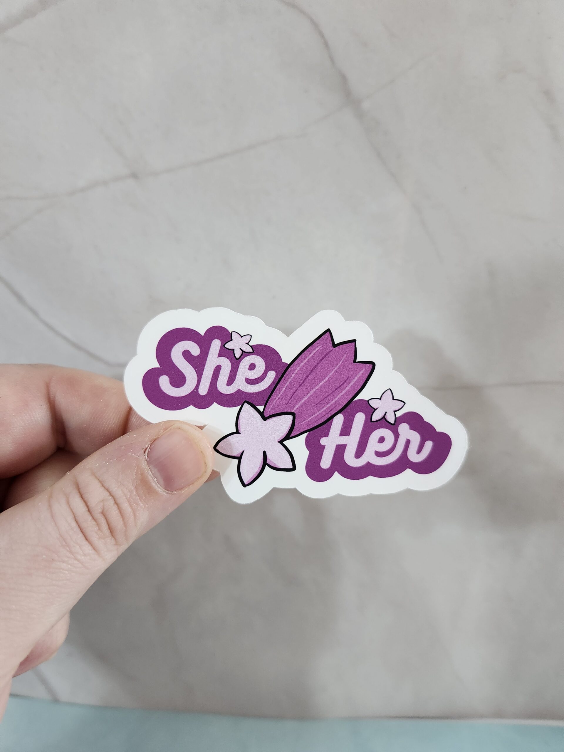 Proudly display your pronouns. You can apply this sticker to your laptop, water bottle, pc, locker, anyplace you want to customize!
