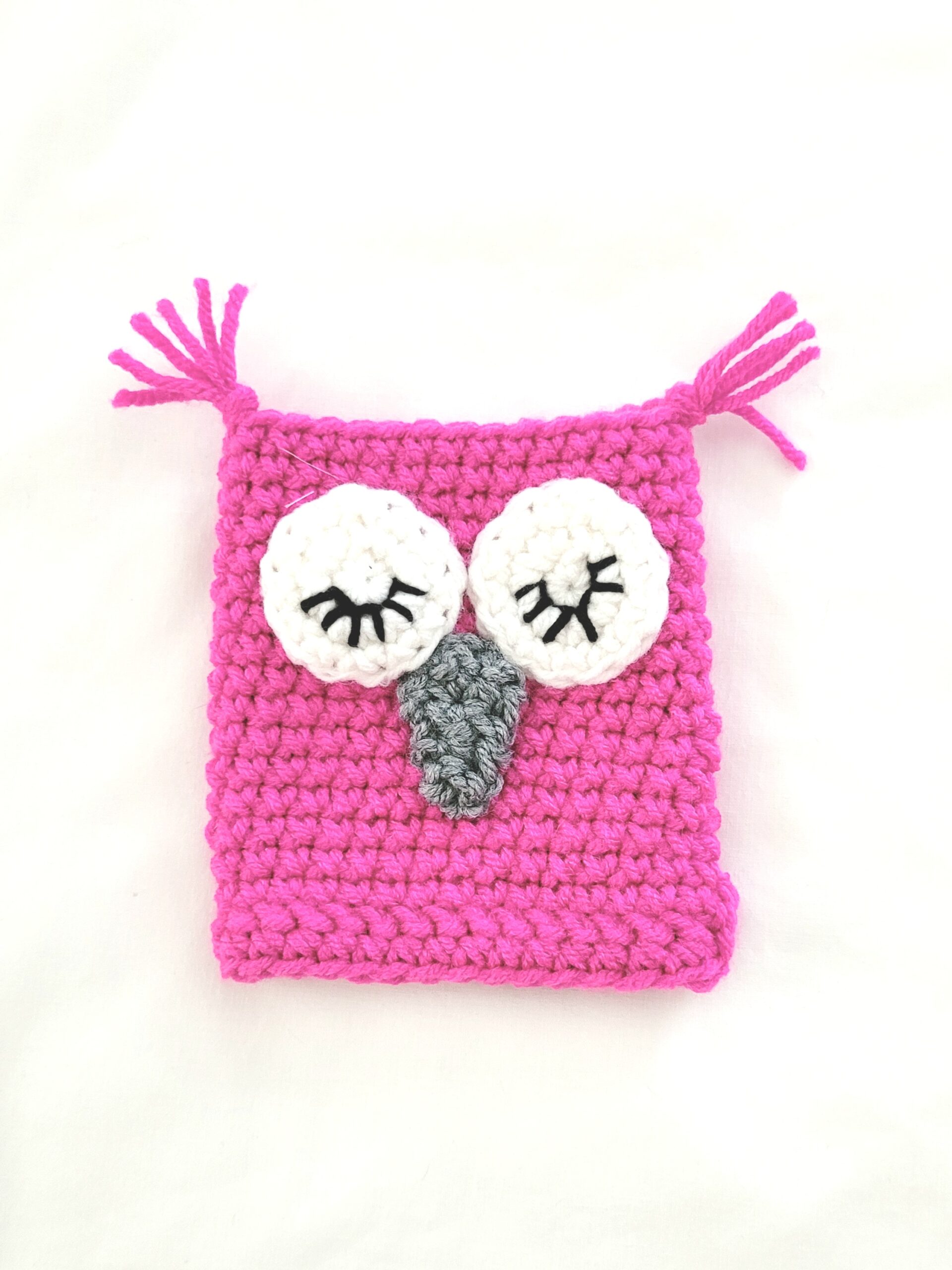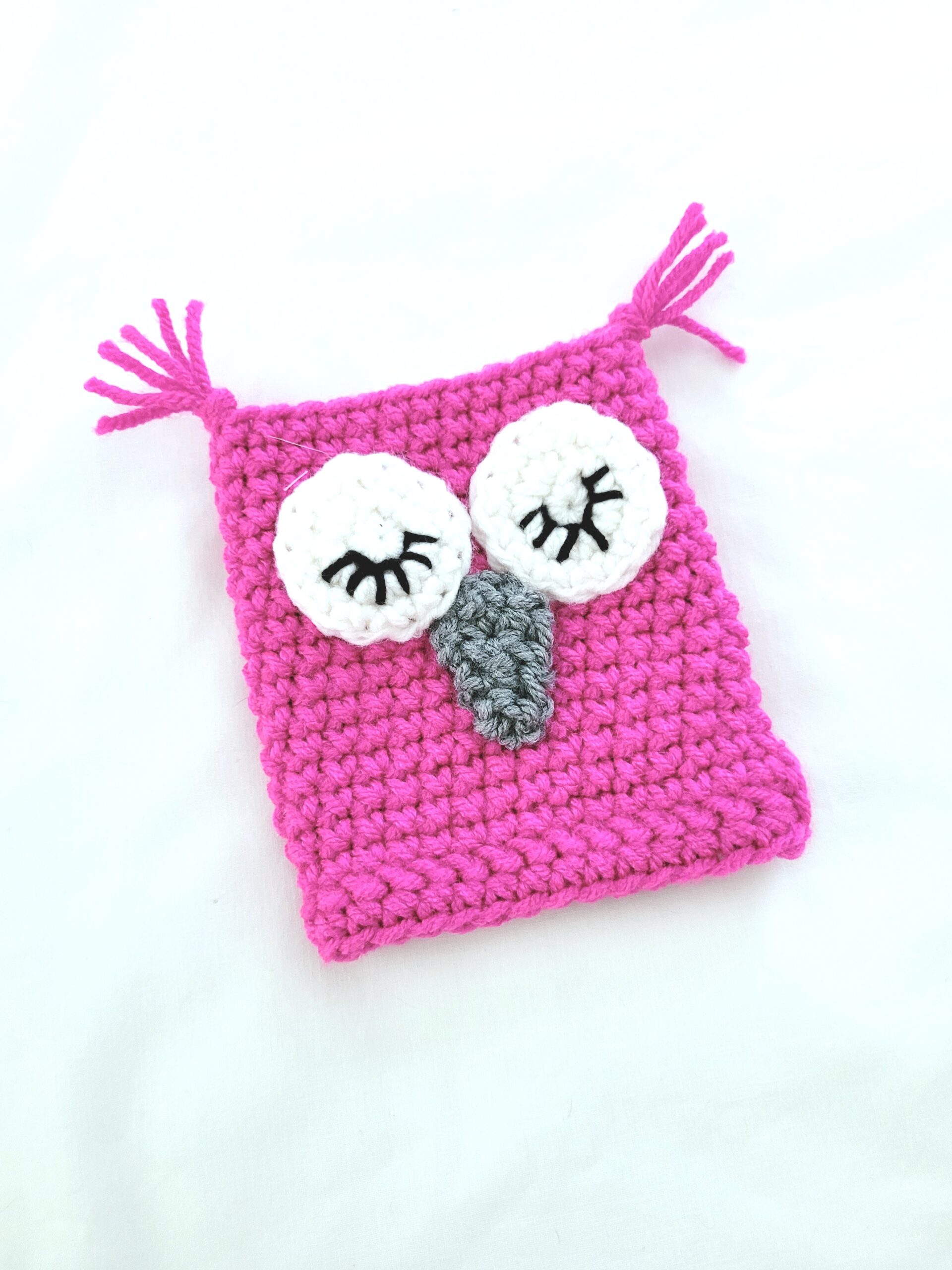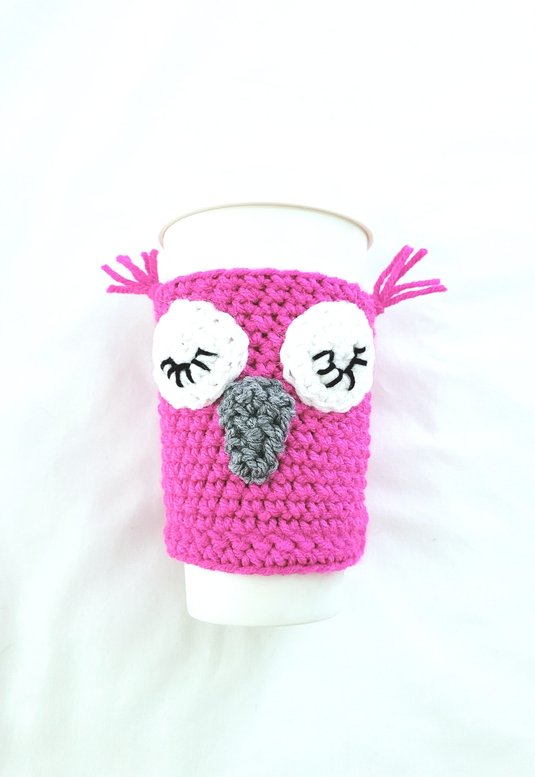 Coffee Cup Sleeve – Crochet Reusable Cup Cozy – Fuschia, Twilight Bloom Sleepy Owl