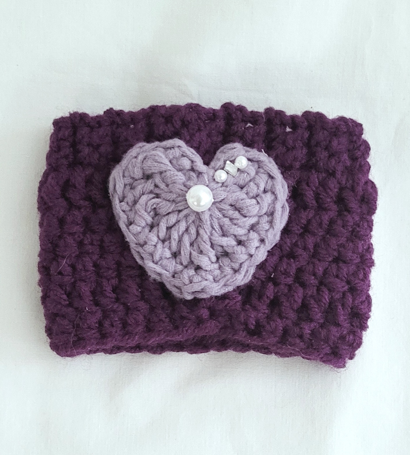 Coffee Cup Sleeve – Crochet Reusable Cup Cozy – Purple with Lavender Hearts
